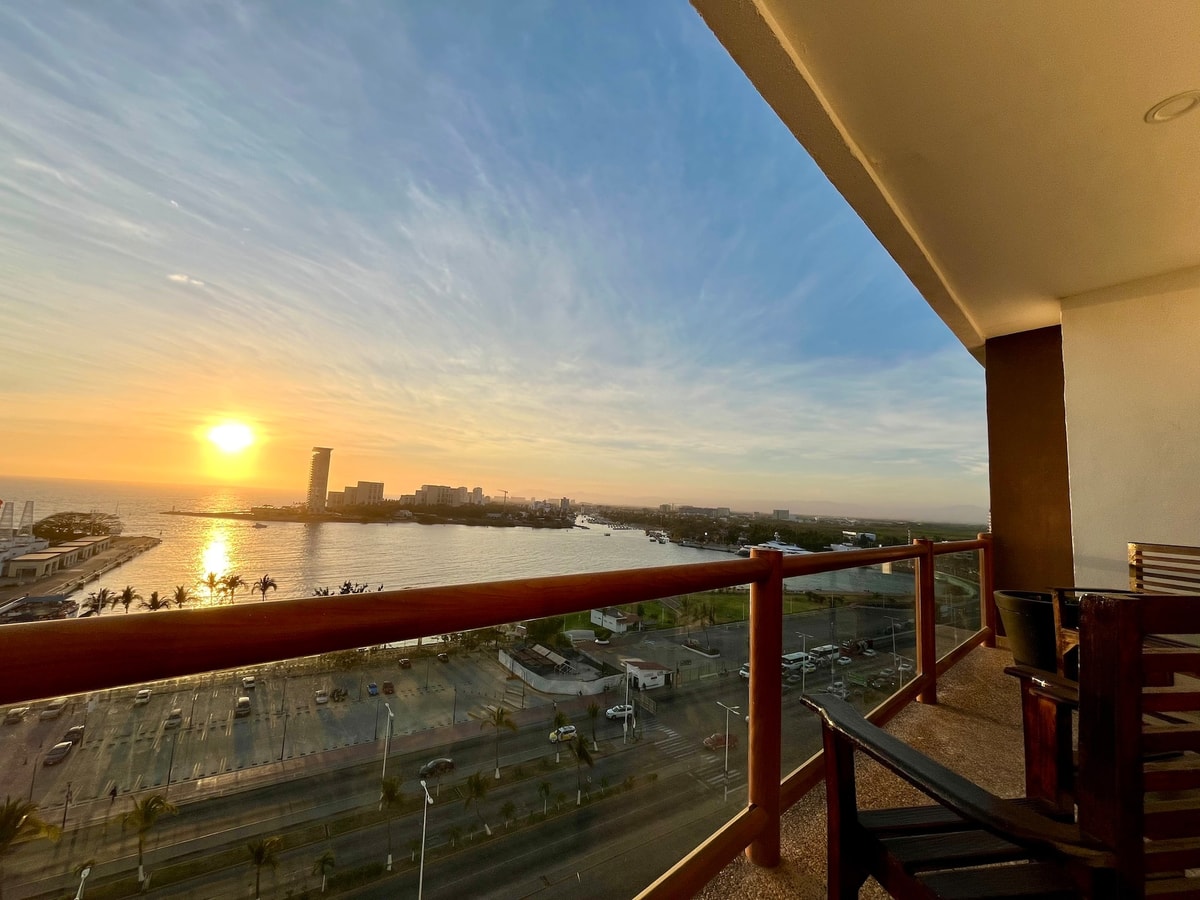 Descubre nuestro espacioso condominio en Deck12, ideal para unas vacaciones únicas. Localizado en el corazón de la zona hotelera de Puerto Vallarta, su privilegiada ubicación te permitirá disfrutar de la oferta gastronómica, compras y diversión que el puerto ofrece a sus visitantes. El condominio está equipado para brindarte una estancia excepcional. La cocina te permitirá preparar tus comidas favoritas y disfrutarlas en el comedor o en la terraza privada con vistas al mar y a los cruceros.