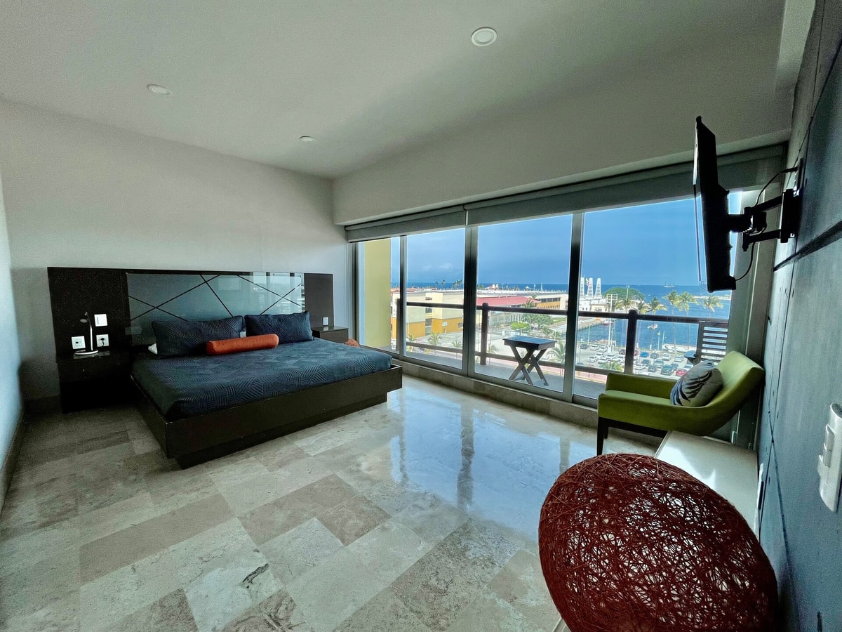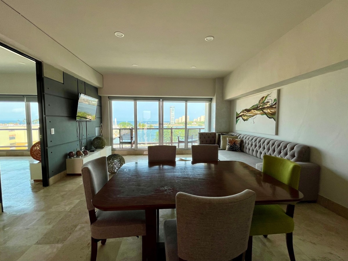 Descubre nuestro espacioso condominio en Deck12, ideal para unas vacaciones únicas. Localizado en el corazón de la zona hotelera de Puerto Vallarta, su privilegiada ubicación te permitirá disfrutar de la oferta gastronómica, compras y diversión que el puerto ofrece a sus visitantes. El condominio está equipado para brindarte una estancia excepcional. La cocina te permitirá preparar tus comidas favoritas y disfrutarlas en el comedor o en la terraza privada con vistas al mar y a los cruceros.